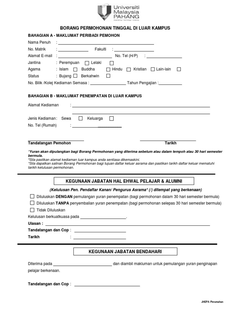 Borang Permohonan Tinggal Di Luar Kolej