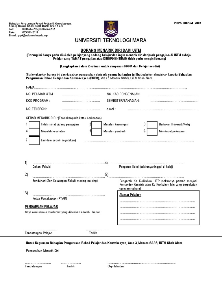 Borang Menarik Diri Dari Uitm. Ictkpa E Borang Kolej. Ictkpa E Borang Kolej.